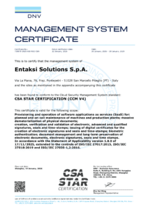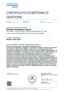 Per fornire ai propri clienti servizi e prodotti che garantiscano sicurezza, affidabilità e qualità elevati, Entaksi Solutions SpA si è dotata di un Sistema Integrato di Gestione conforme alle seguenti norme internazionali: