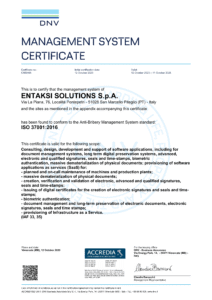 To provide its clients with services and products that ensure security, reliability, and high quality, Entaksi Solutions SpA has adopted an Integrated Management System compliant with the following international standards: