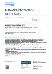 The certifications have been issued by DNV, one of the leading certification bodies worldwide. Entaksi pursued these certifications to make evident and objective its focus on customer satisfaction, the commitment with which the company designs and provides excellent solutions and services, and the ongoing effort toward continuous improvement.